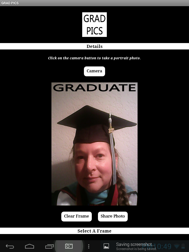 I designed this app to be used on a mobile phone, but you can use it on a tablet as well. I graduated in the spring of 2015, and created this app as I thought this would be a fun way to share in the experience with other graduates and their families. So, download this app, take a picture at graduation and share it with family or friends. Enjoy GRAD PICS! | ||