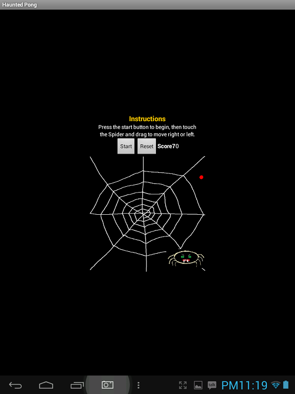 This is a twist on a classic game of ball and paddle with a theme of a spider web backdrop and a spider as the main character. Simply move the spider right or left to prevent the red ball from reaching the ground. | ||