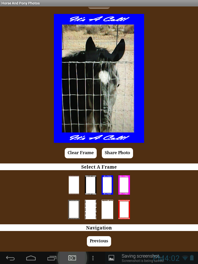 As an equine owner myself, I am always taking pictures of my horse. This app has several equine frames to place around an image you take with your devices camera. I have setup this app to fit within the area of a cell phone or tablet, so you can take a landscape or portrait picture. After you take a photo and add a frame, you can share it on the web by email or through social media. Enjoy using the Horse And Pony Photos app! | ||