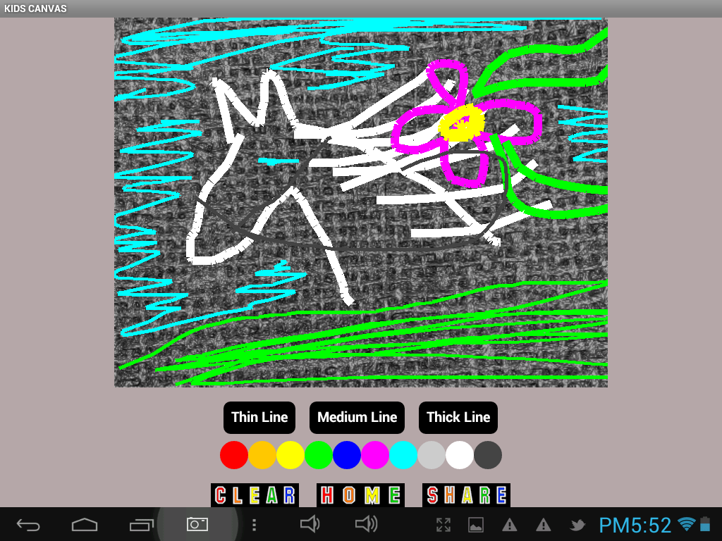 This is an easy to use app that will allow kids to create with two canvas colors, multiple line thicknesses with ten color choices to select from. When the work of art is complete, click on the share button to send by email or post on the web for friends and family to enjoy too. | ||