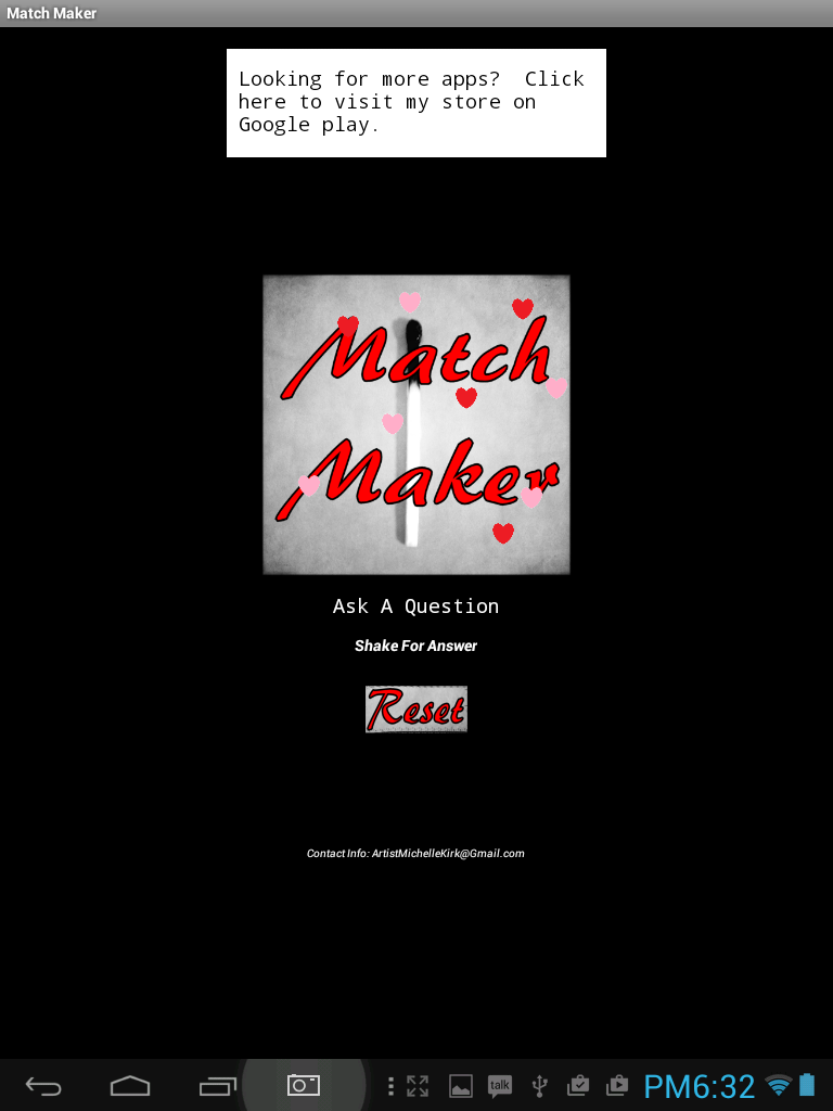 Have you found that perfect someone... or not? Need an answer, ask a question. This app will keep you asking questions as it cleverly answers them all with a simple shake of your device. If you don't like the answer, ask again. Sometimes persistence does pay off. Enjoy! | ||