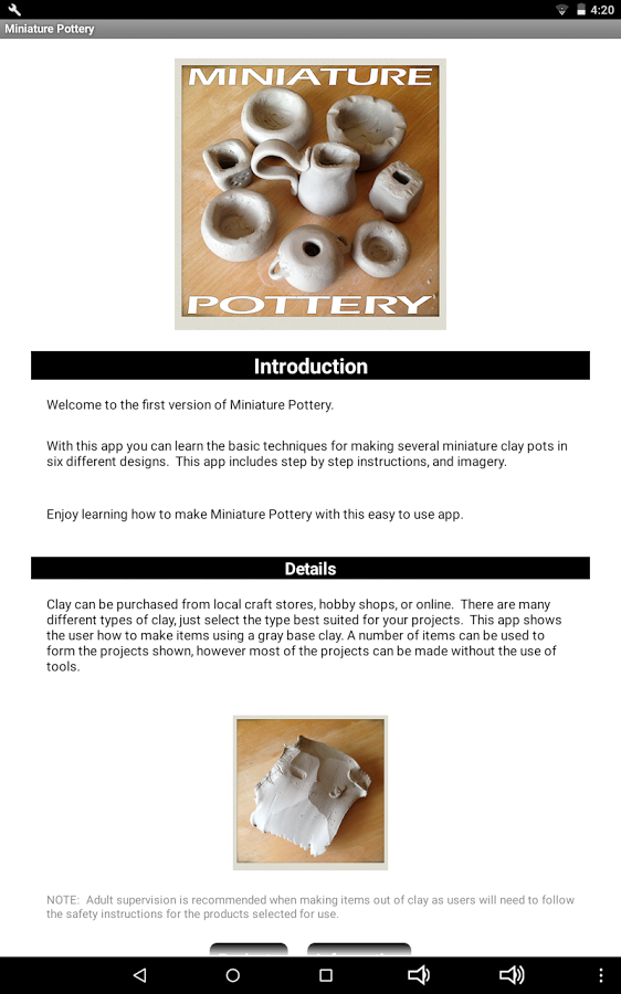 With this app you can learn the basic techniques for making several miniature clay pots in six different designs. This app includes step by step instructions, and imagery. | |||