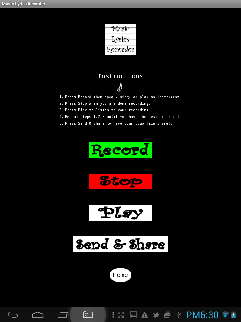 This app allows a musician to speak, sing, or play that song idea while away from the studio. Simply Record, then Send & Share. Enjoy using Music Lyrics Recorder! | ||