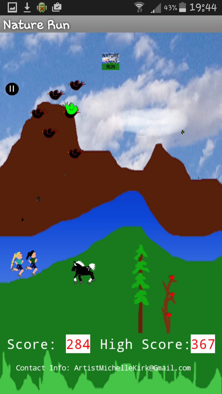 Simply select a player and press the start button. Tap the screen to move the runners up, and stop tapping to move the runners down. The goal is to avoid obstacles as this will end the game. High score wins! Enjoy playing Nature Run! | ||