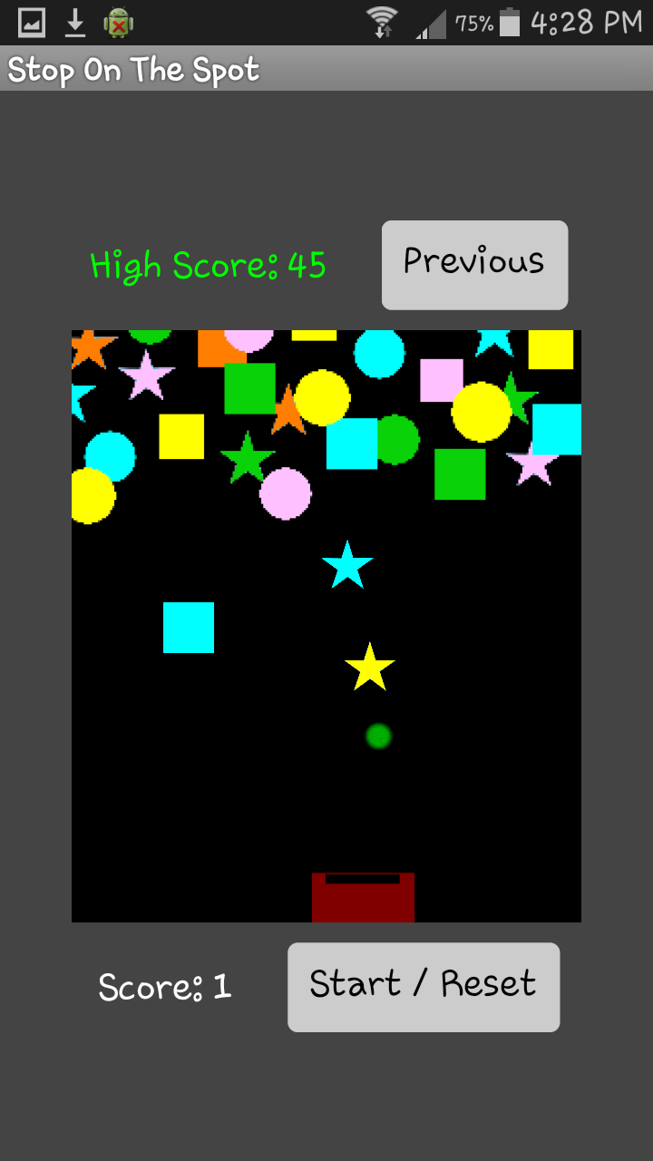 The goal is to stop the shapes on the screen from reaching the bottom or the game is over. Drag the paddle left or right and tap the screen to launch your stopper toward any of the shapes in order to stop them. Earn points for every shape you stop. Enjoy playing Stop On The Spot! |