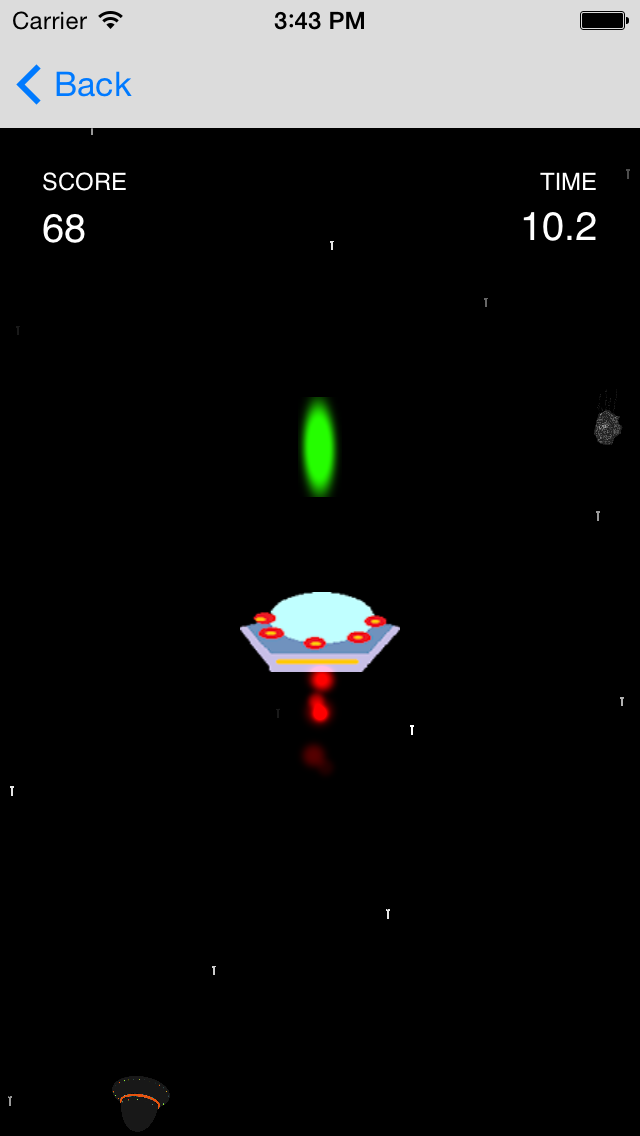 This is the first version of UFO Space Flight. The goal of the game is to protect your UFO by destroying any objects and enemy spacecraft that cross your path, while working toward a high score. | ||